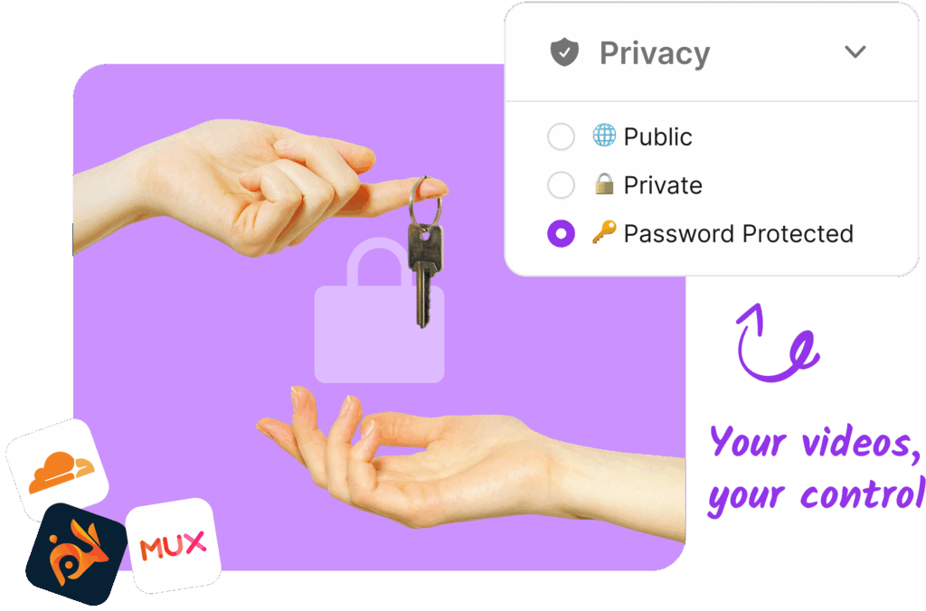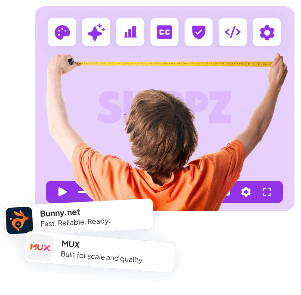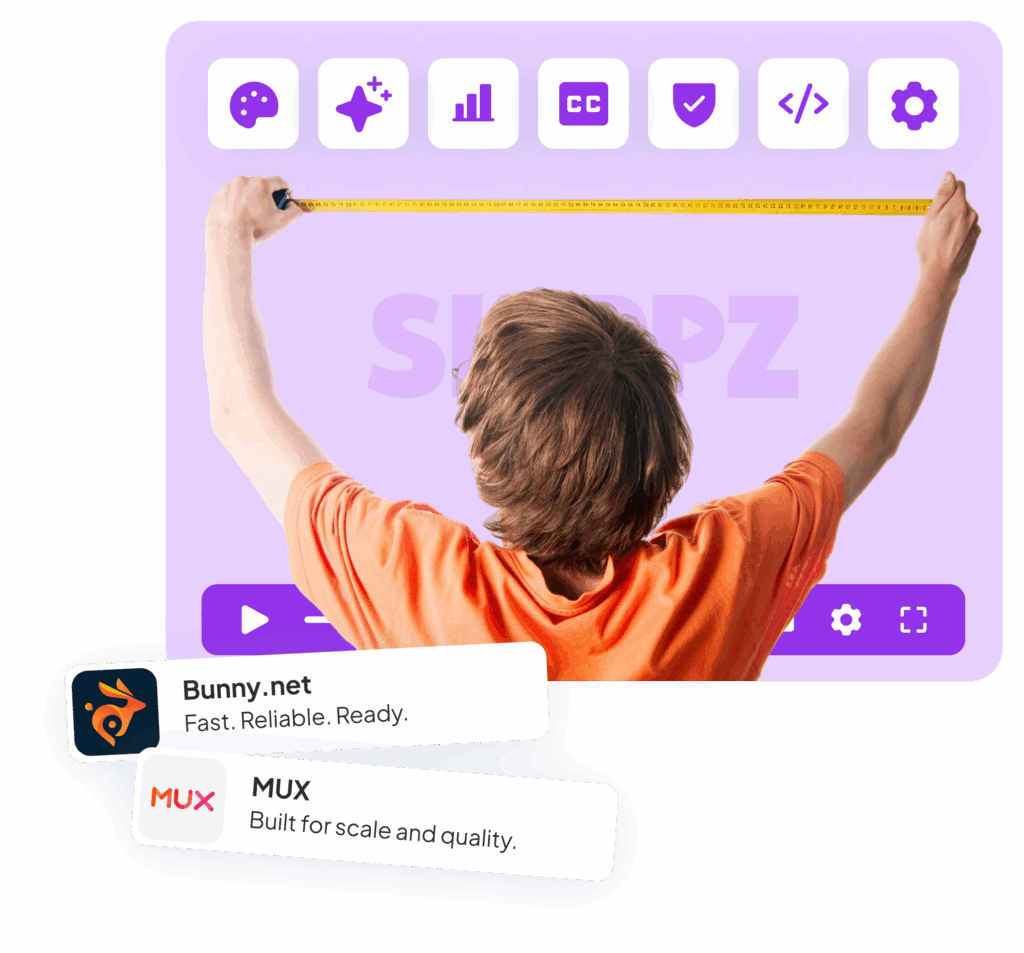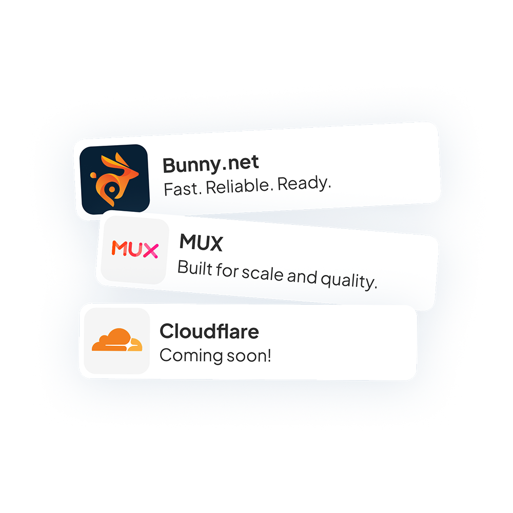 Your videos stay inside your Bunny or MUX account. Skippz powers playback, analytics, and marketing features without taking ownership of your content.