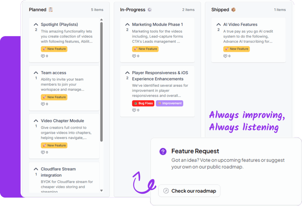 Vidyard is built for sales and marketing teams that need deep analytics and CRM integrations. But as your usage grows, so do the costs, plan restrictions, and feature gates. Advanced analytics, branding control, and integrations quickly push teams into expensive tiers.