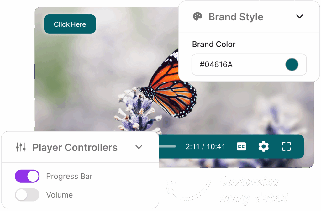 Create a player that feels native to your brand. Adjust colours, controls, layouts, and behaviour for a consistent experience.